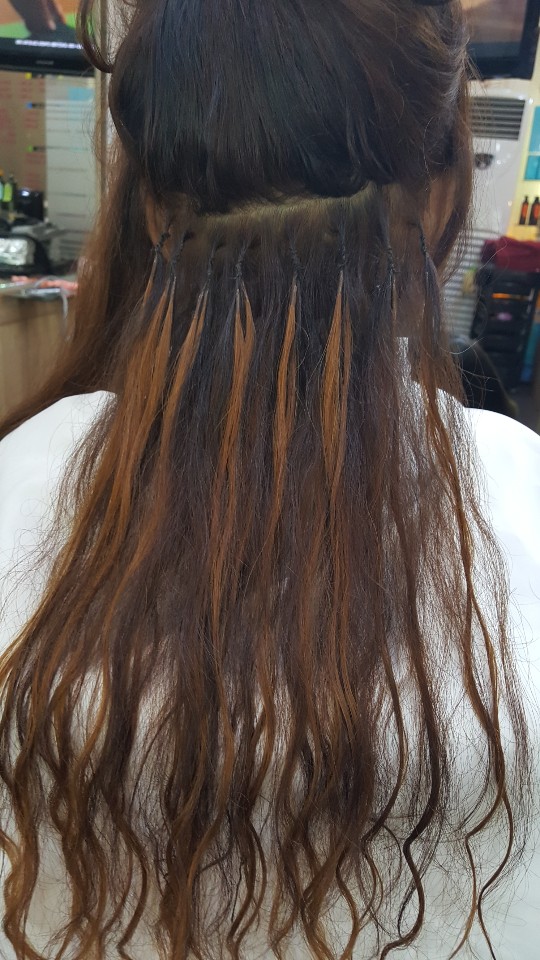 전체 다 붙이고 난 시술샷인데 원래의 내 머리와 붙임머리의 경계선이 전혀없다!